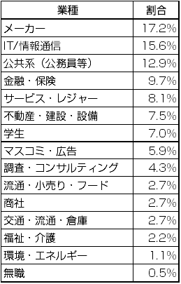 ご自分の所属する業界はどんな割合でしたでしょうか?