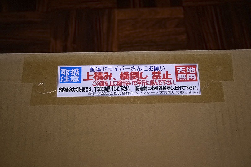 天地無用――上積み、横倒し禁止のシール。業者の気遣いが感じられます。