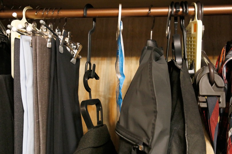 実際にクローゼットへ掛けてみたところ。かなり薄いので邪魔になることはありません。