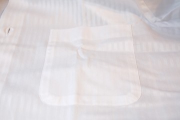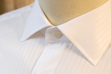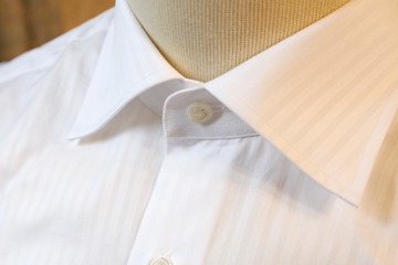 *作業着としての白シャツ:ポリ混、短いレギュラーカラー、短い袖、低い襟など