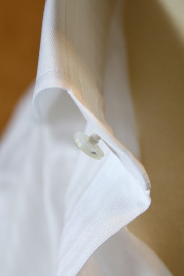 襟の形(ただしカラーステイ追加後)は気に入ったのですが、ドレス系のシャツなのにポケットがある、ガゼットの形が事務的、ボタンが小さいなど、「旧来の日本のシャツに、流行のディテールを追加したものの、消化し切れていない」感が強いです。