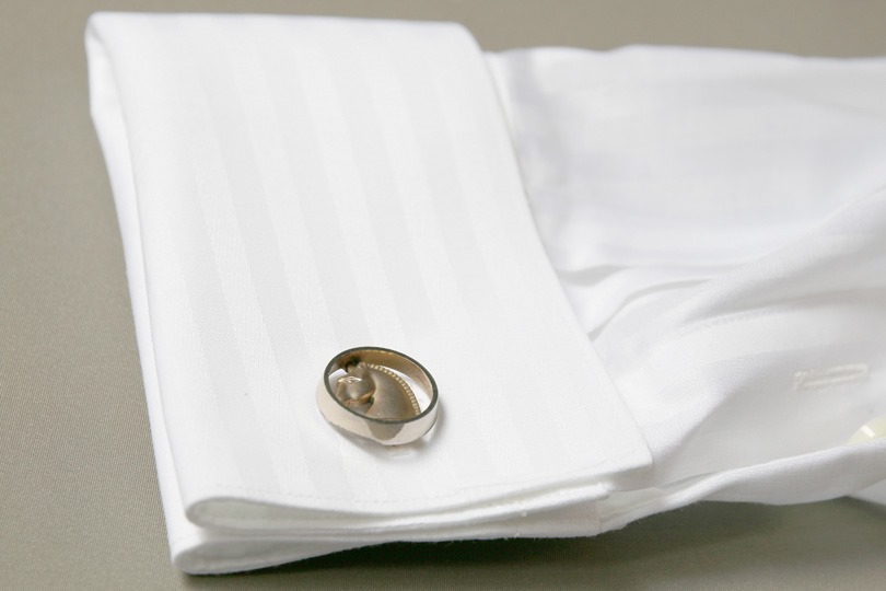 カフリンクス(いわゆるカフスボタン)は、披露宴を初めとした式典やパーティーにはぴったりの装飾です。デスクワークが多いから会社には着けていかない、と言う方も、この機会に挑戦してみて下さい。