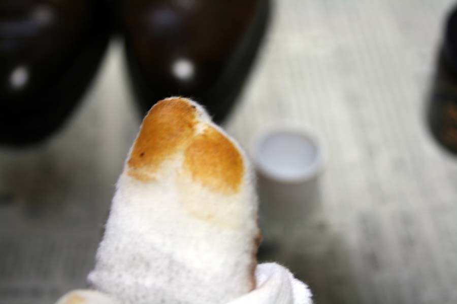 7.靴のつま先とかかとのみにクリームを塗り込みます。