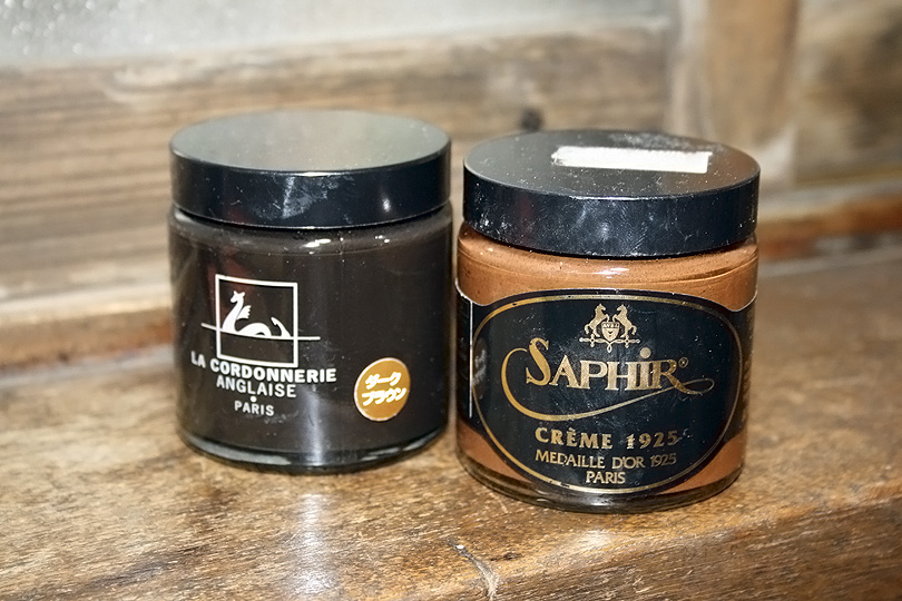 はその多くが円形の缶に入っており、昔ながらの靴クリームです。靴を光らせることは得意ですが、靴に栄養を与えることは苦手です。このサイトでは、仕上げにちょびっと使うことを推奨しています。