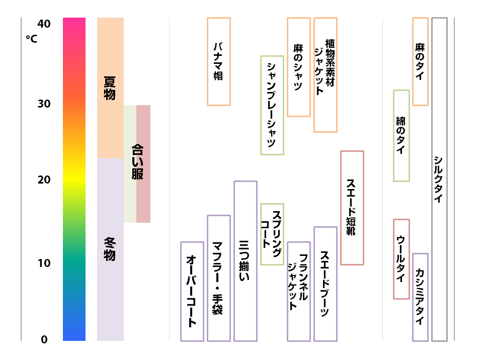 一番右側が、タイ(ネクタイ)の素材と気温の関係です。