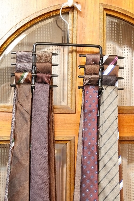 また、ハンガーごとに色や柄でまとめると、目当てのネクタイを探し当てるのがずいぶんと楽になります。