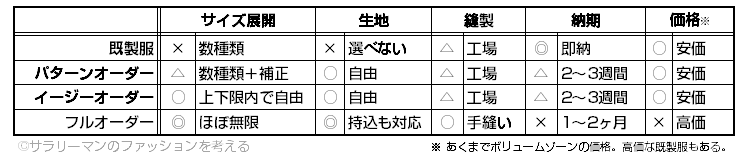 たしかに、同じ工場縫製のパターンオーダーやイージーオーダーに対しては、意見としてもっともだと思います。また、消極的否定ながらも、一番多い主張だと思いますので、まずはこの点から考えてみます。