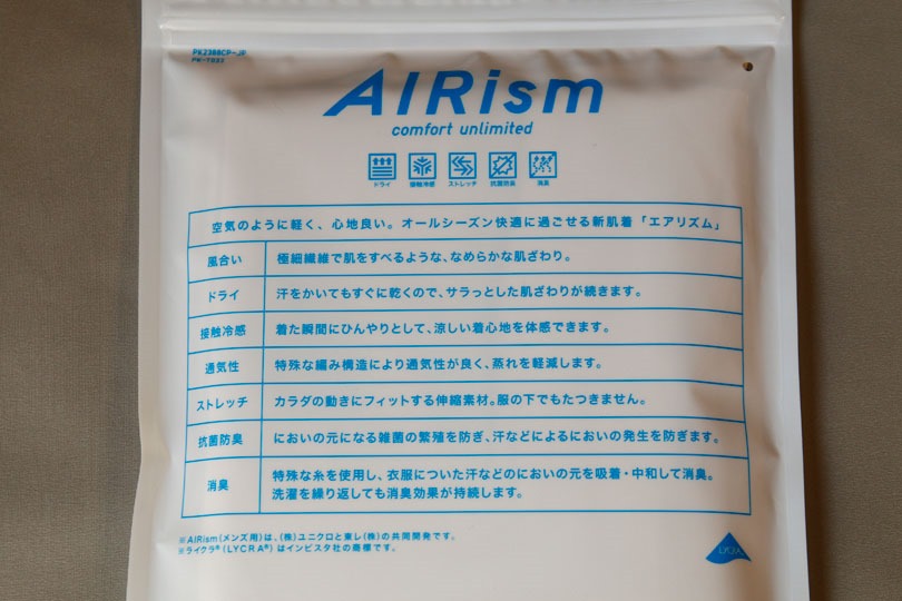 こちらがパッケージです。従来のエアリズムよりも高い\1,500(税抜)で販売されていますが、セール時には千円を切ることもあります。