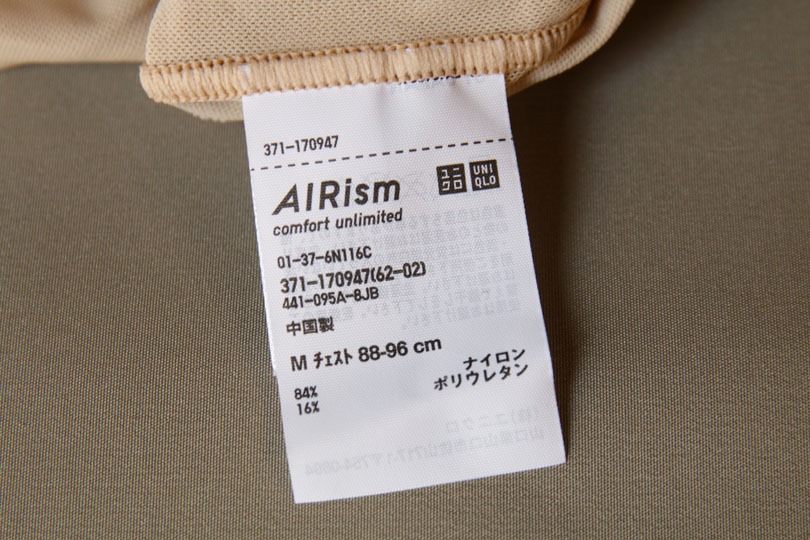 - エアリズムシームレス:ナイロン84%、ポリウレタン16%