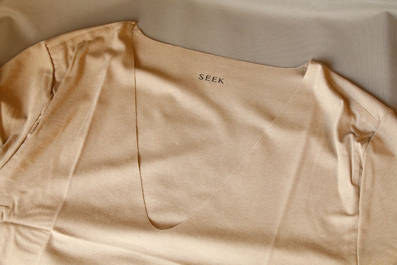 色はスキンベージュを選んだのですが、ボディの色が薄めだったので、エアリズムよりも若干目立っています。(SEEKの肌色には少し濃いめのスキンベージュと、薄めのライトベージュがあります。)