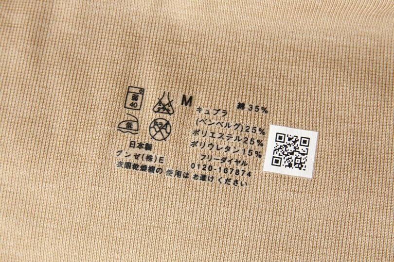 材質は植物系(綿とキュプラ)が6割、残りが合繊です。また、グンゼらしく日本製です。
