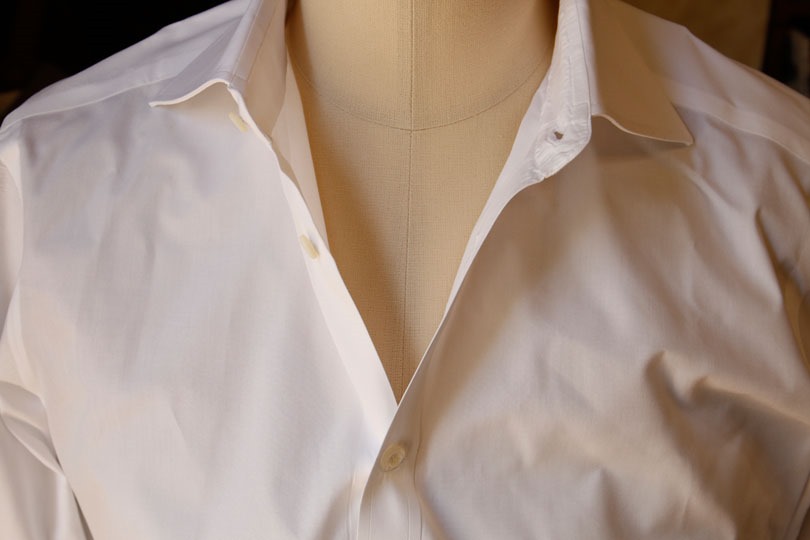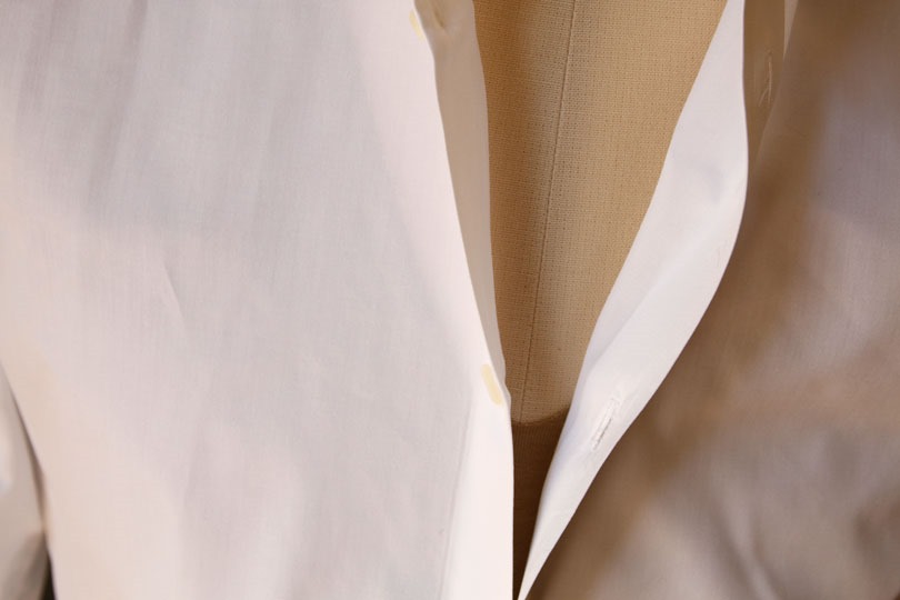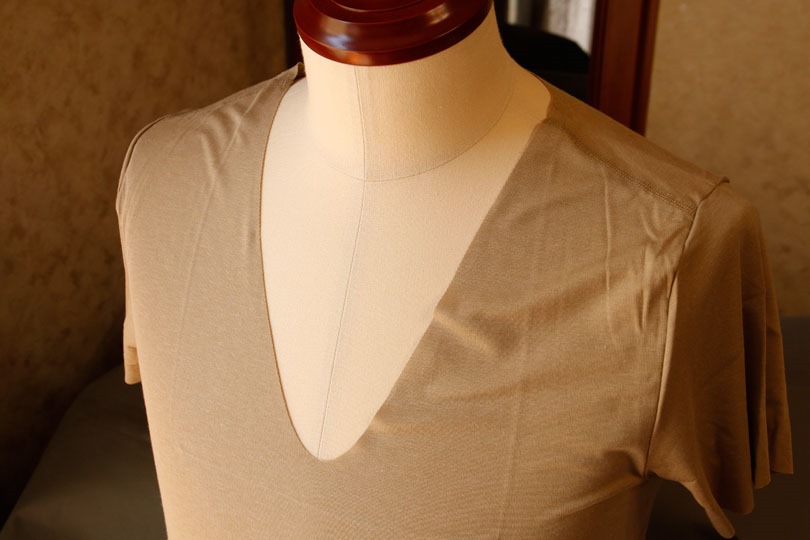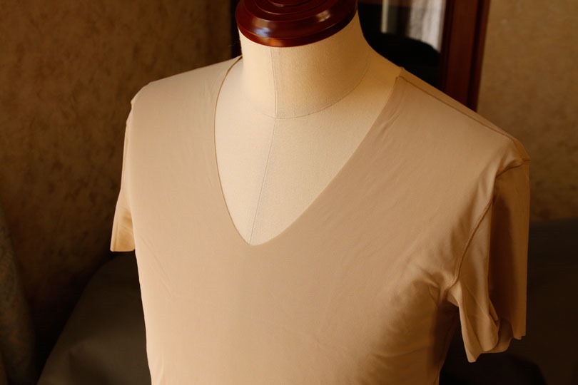 Vネックが深いので、第2ボタンまで開いても十分下着が隠れます。リゾートシャツなどのカジュアルウェアにも適していると思います。