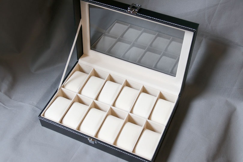 そんな事情から、以前5個入りの時計ケースをレビューしたことがありますが、入りきらず、一度に沢山保管できるものを探していました。しかし、なかなか良い物に巡り会えていません。