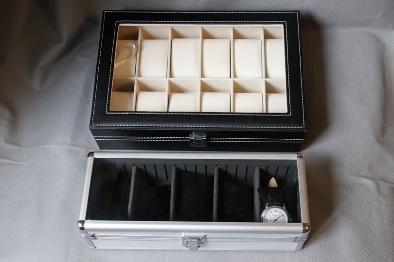最後に、以前の記事「腕時計の保管/収納方法を考える」でレビューしたESPRIMAのアルミ製収納ケースと比較をしてみます。