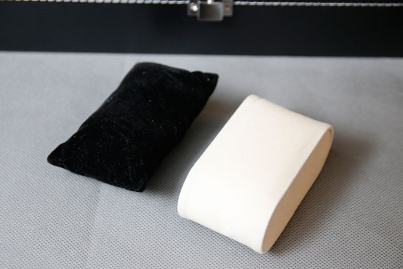 時計用の「枕」。 仕切りと同じ、手触りの良いベルベット素材です。
