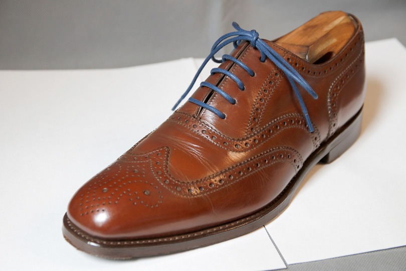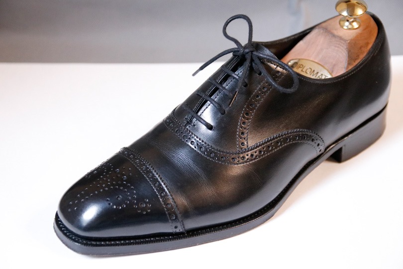 ただし、セミブローグ(爪先に穴飾りがあるタイプ)でもあるため、カジュアル転換するには良さそうなモデルだと思い、選びました。
