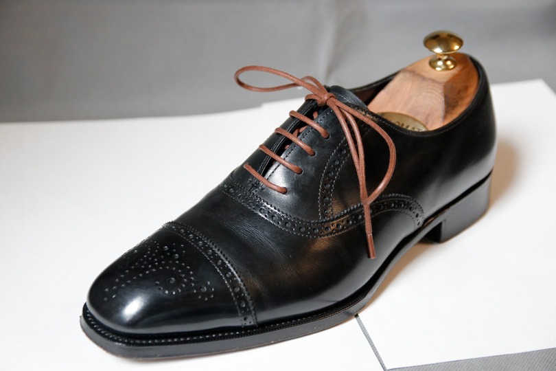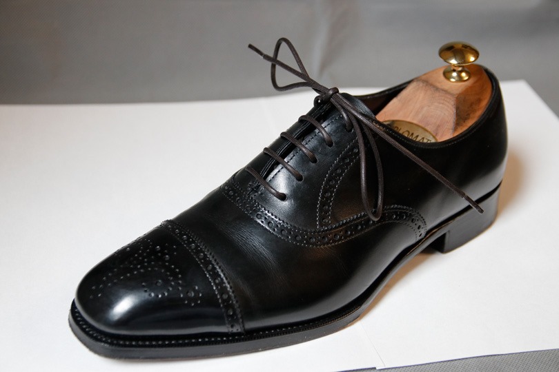 まずはこちらの内羽根セミブローグの黑靴から。
