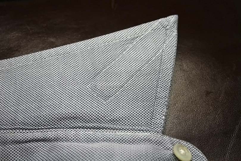 シャツは何度も洗いを掛けると、衿の部分がくるっと丸まってしまいます。