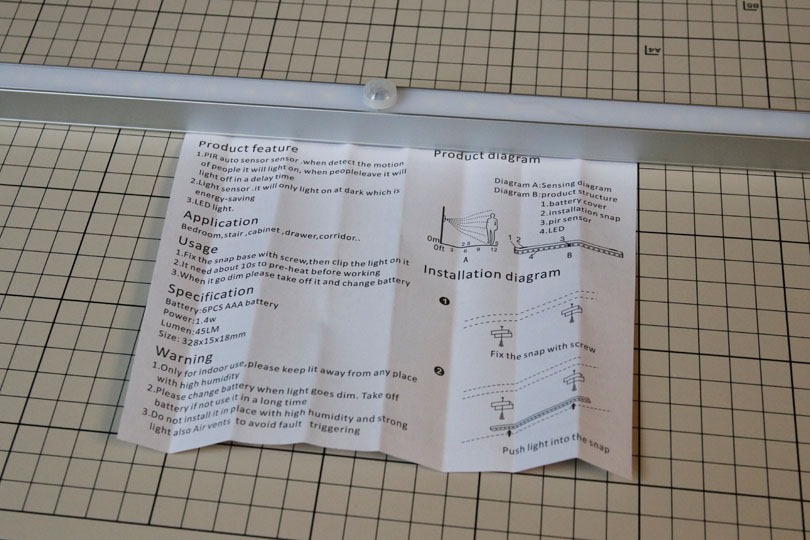 - 照明は電池駆動、LED、昼白色、センサー付き、広めのものを選ぶ