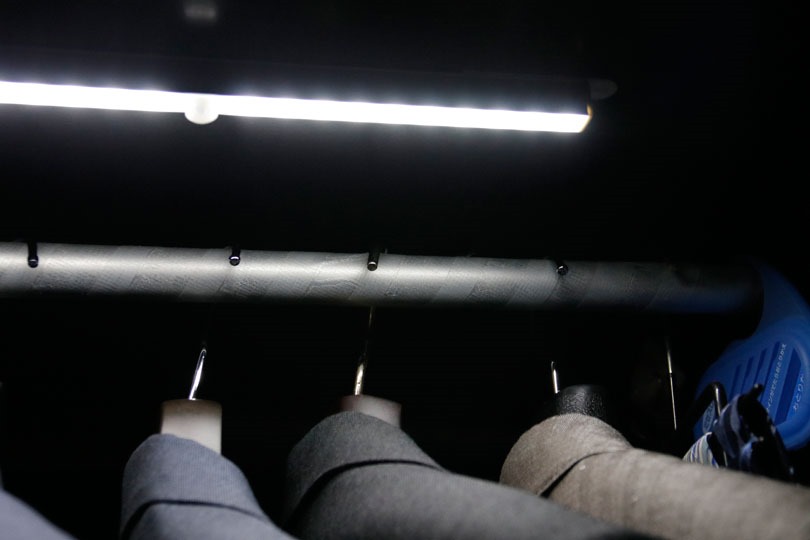 中央の出っ張りが、人感センサーです。クローゼットを開いたとき、自動で点灯します。