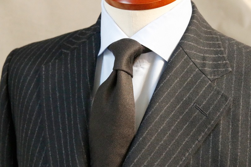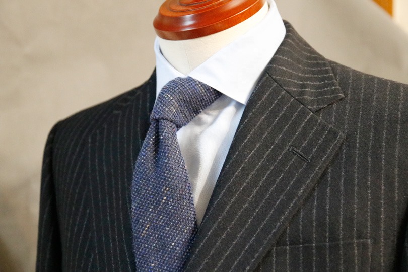 一般的に、スーツスタイルのタイはシルクを用いますが、冬用にはウールやウール混のタイもオススメです。