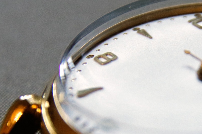 風防――特に古い時計に多いアクリル風防の場合、使用に伴う細かい傷がつきやすいです。そんなときは歯磨き粉やサンエーパールなどで磨くと綺麗になります。(ガラス風防の反射防止用のコーティングなど、一部磨けないものが有るので注意します)