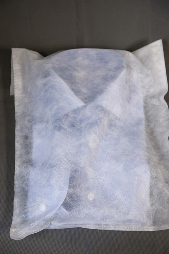 シャツを取り出したところ。固定用の部材を一切使わずに梱包されていますが、型崩れしていないのには毎回驚きます。