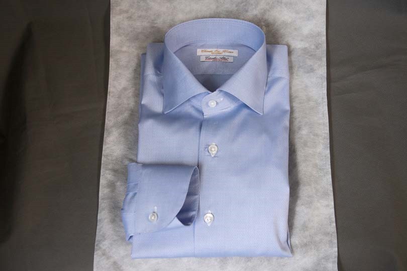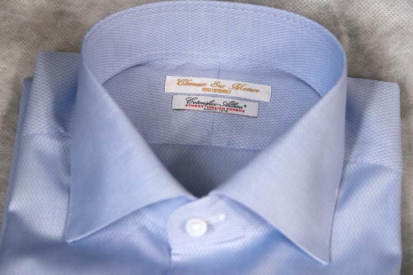 イタリアを代表するシャツブランド「アルビニ」(ALBINI)の生地です。汎用性の高い水色ドビー生地で、ビジネスにも使いやすい耐久性のある100番双糸のものを選びました。