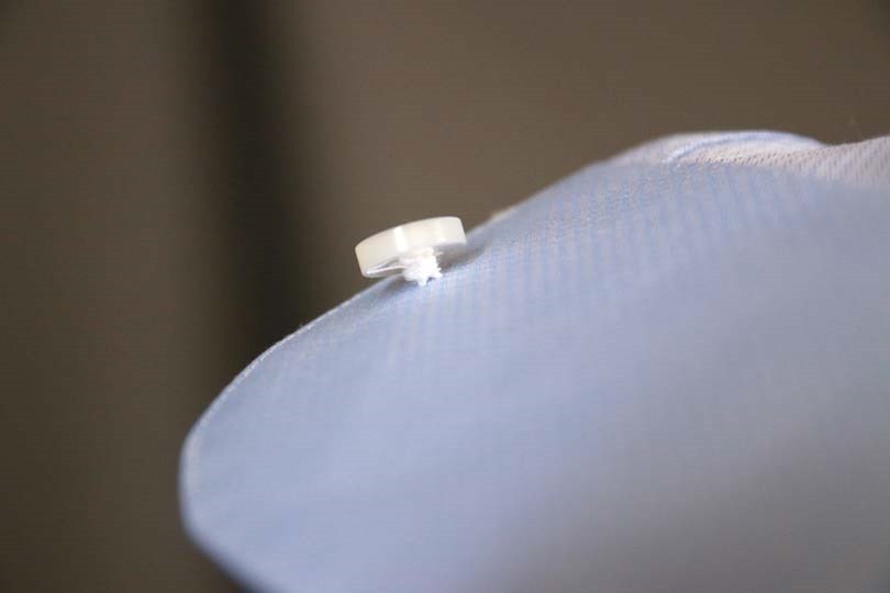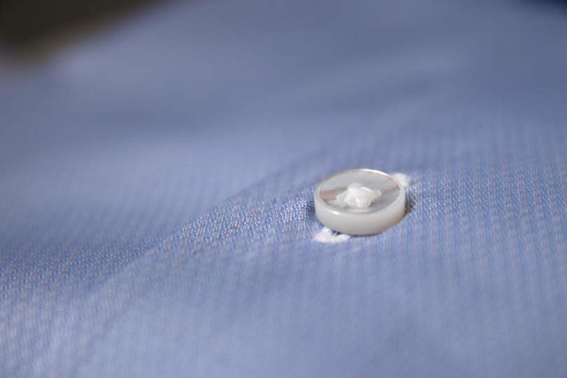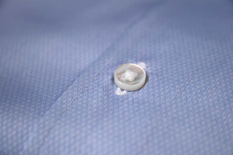 ボタンが大きくなると、付け糸の負荷が気になりますが、袖と襟のボタンは根巻き(ボタンに糸を巻き、補強する取り付け方法)をしてあるので、安心です。