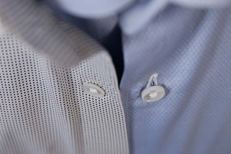 貝ボタンの厚みは3mm迄なのかというと、そうではありません。イタリア製を中心に、4mm厚以上のボタンを使ったシャツも流通しています。