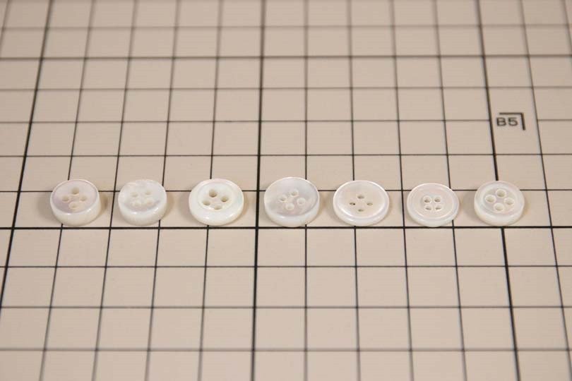 従来、いずれも2mm厚で、1,000円の白蝶貝と500円の高瀬貝がありました。今回はそれぞれに3mm厚のボタンが追加されました。