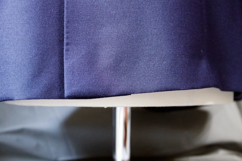 ▲ あるテーラーで仕立てたスーツ上着の背。トルソーの腰まで着丈がある。