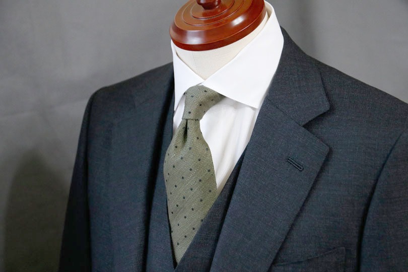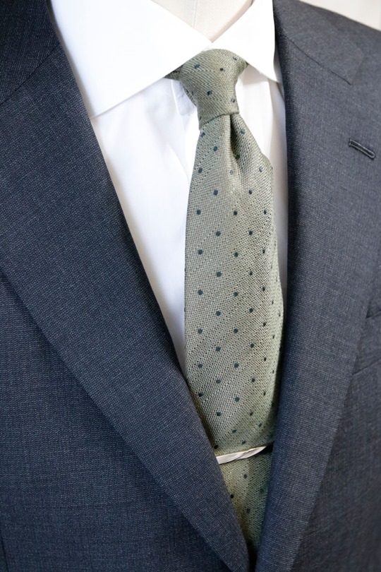 ウェストコートを着ると、タイクリップは完全に隠れ、外から見えなくなります。しかし、このふわっとしたネクタイの留まり方は、タイクリップならではです。