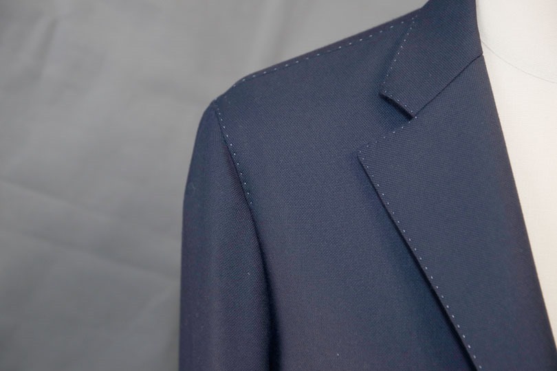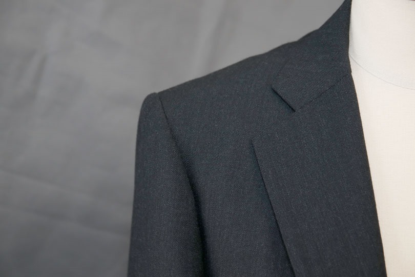 ▲ 肩パット無し(いわゆるアンコン仕立て)。肩が落ちているのが分かる。