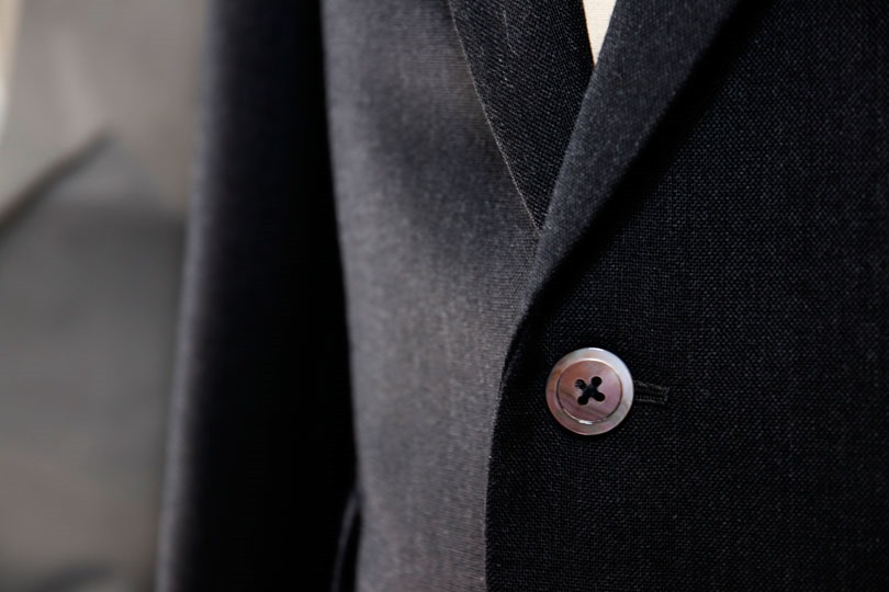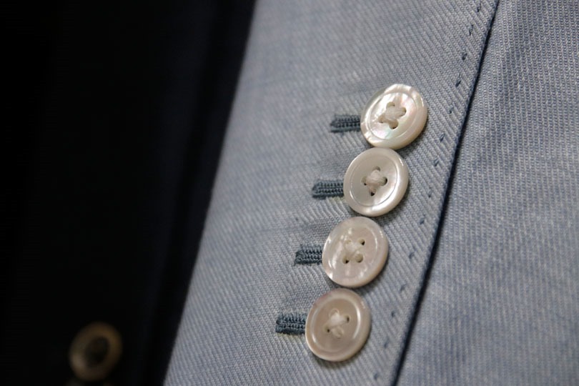 もちろん、白蝶貝など色の薄いボタンはリゾート色が出過ぎるためスーツには不向きでしょう。スーツ用としては、色の濃い黒蝶貝や茶蝶貝が良いと思います。