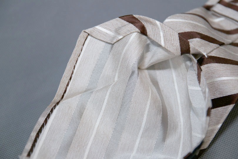 ガルザ(garza、ガルツァ)とはイタリア語でガーゼを指し、ガルザタイとは要するに透け感のある薄手のネクタイのことです。