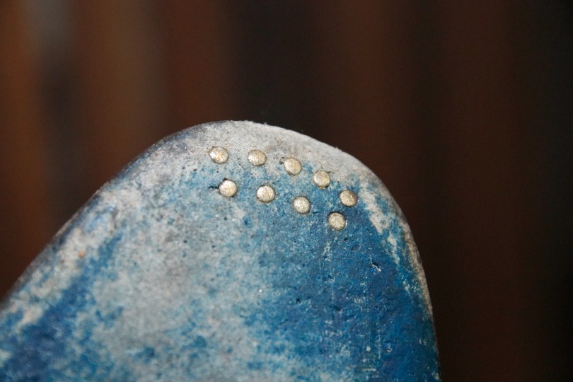 また、飾り釘を打ち込むというパターンもあります。(靴のメーカーによっては、予め飾り釘が打ってあるものもあります。)