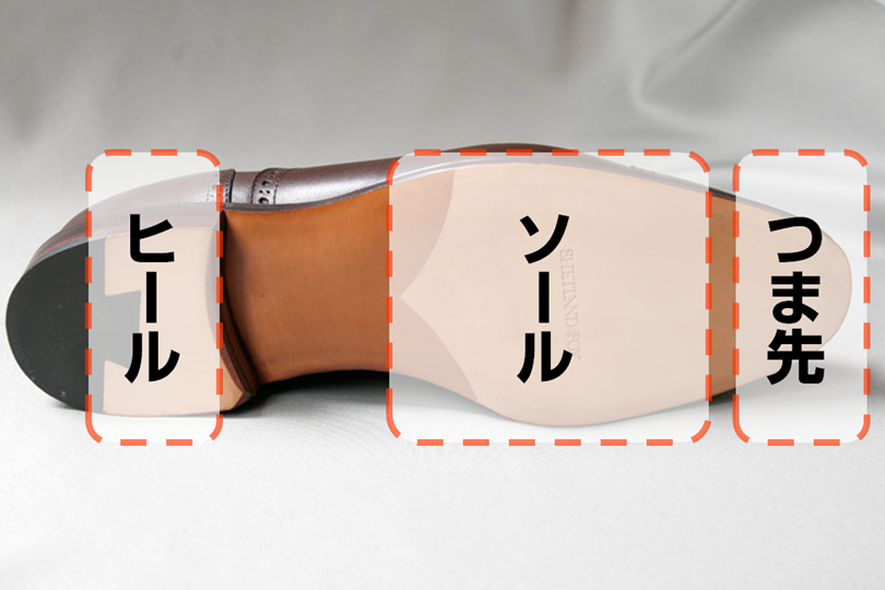 ひとくちに靴底といっても、つま先、ソール、ヒールと、ダメージが発生する箇所は主に3つに分かれます。