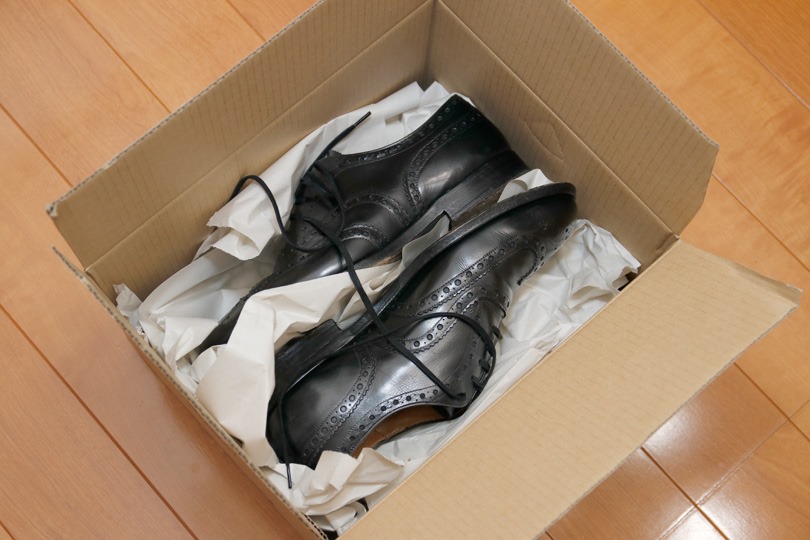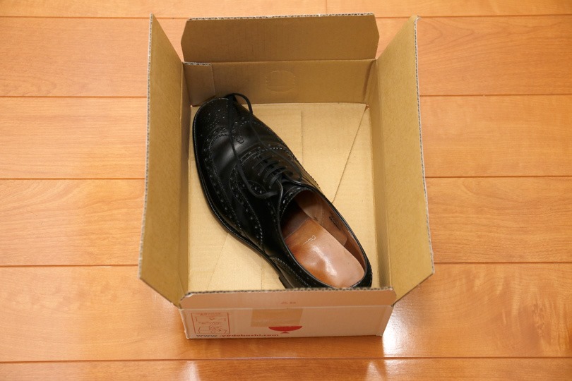 (どこの店も同じですが)シューツリーは入れないで欲しいとのことなので、靴だけで送ります。
