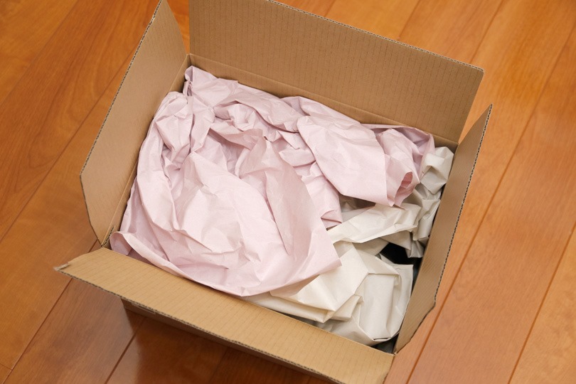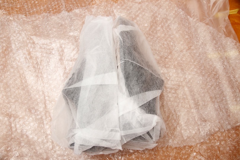 大型の緩衝材の内側に、小型の緩衝材(通称プチプチ)、そして個別に不織布で靴がくるまれていました。