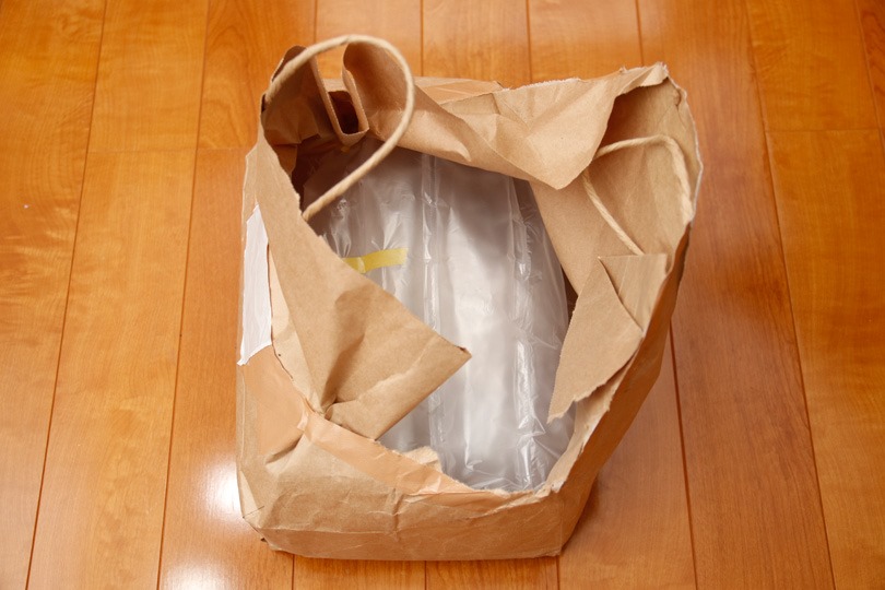 よく見ると紙袋で、中に緩衝材にくるまれた靴が入っています。