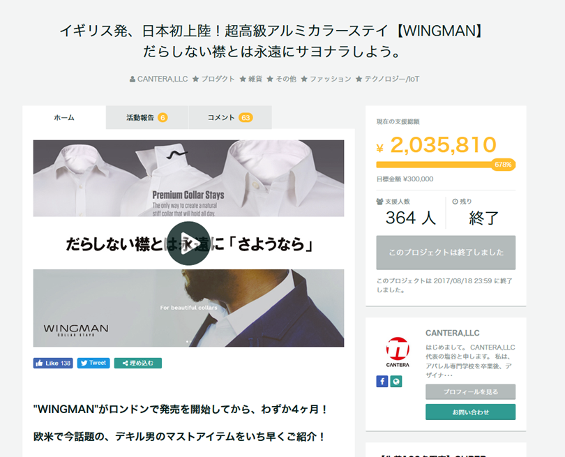 今回の場合は、今年2月に発売されたWINGMANを、日本国内で販売するにあたっての事業資金を調達するものでした(カルチュア・コンビニエンス・クラブ系列のGREEN FUNDINGというサイトで募集)。