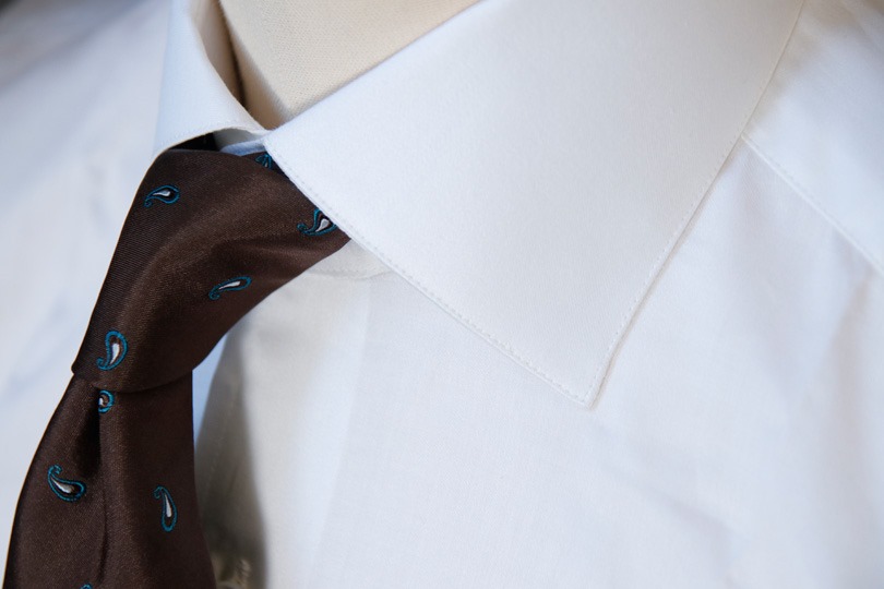 写真は、伝統的な140番双糸(メーカーはTESTA、織りは同じブロード)を使ったシャツの生地で、価格は同店の定価ベースで倍くらいします。