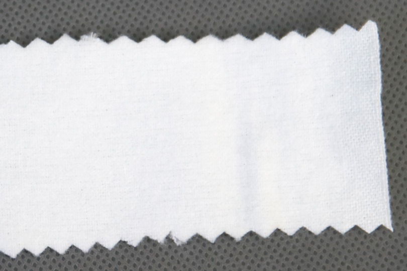 布は縦横垂直に織ってあるため、ジグザグに切断することで糸くずが出にくくなるという理屈です。