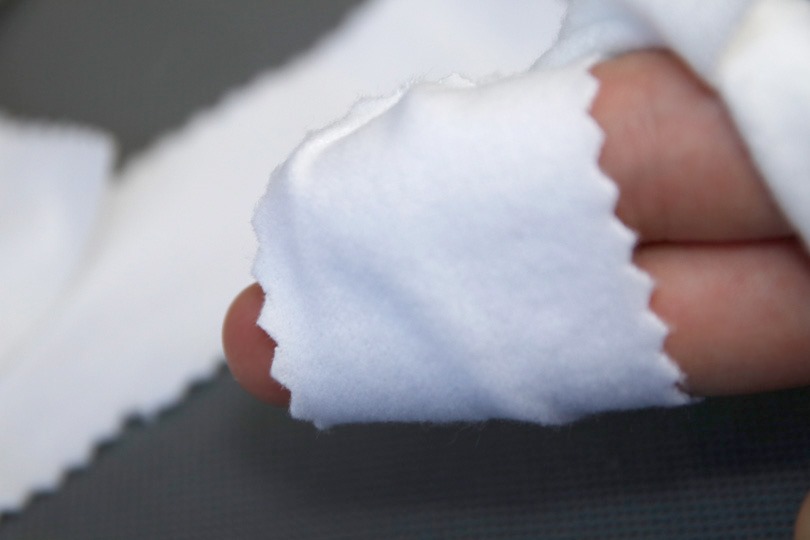 幅3センチ前後のたすき状にすると、指に巻き付けやすくなります。使った部分を少しずつ移動させ、新しい面を使えるようにします。